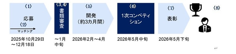 1応募、2マッチング、3・4書類審査、5開発、6 1次コンペティション、7表彰