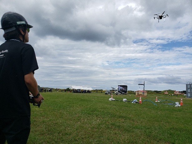 孤立地域への医薬品輸送を想定したデモフライトの様子(提供:JUIDA)