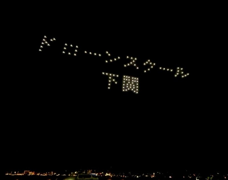 写真:ドローンアートで夜空に描かれた「ドローンスクール下関」