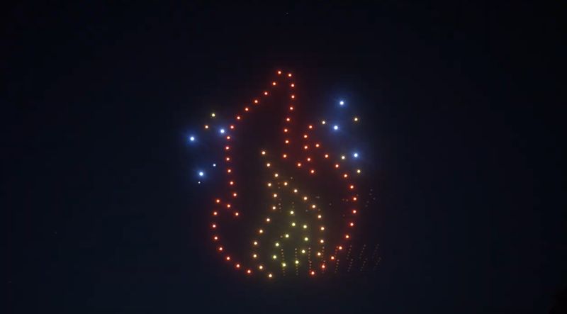 約200機のドローンにより、瀬戸物を象徴する器のシルエットや、瀬戸の象徴である窯の炎、瀬戸市の公式ロゴ「瀬戸」の文字、公式マスコットキャラクターせとちゃんなど、瀬戸市にちなんだモチーフを立体的に描き出した。