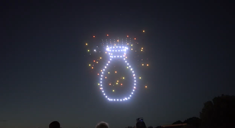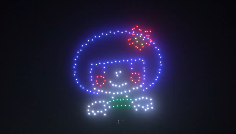 写真:ドローンショーで夜空に描かれた公式マスコットキャラクター「せとちゃん」