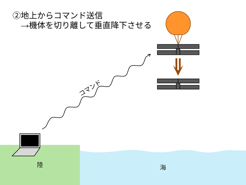 1. 気球に機体を吊り下げて海上へ放球し、高度30kmへ
