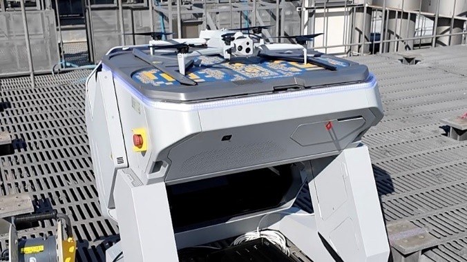 写真:ドローンポート「Skydio Dock for X10」とスタンバイするドローン