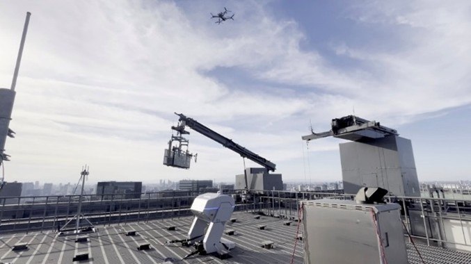 写真:屋上を飛行するドローン