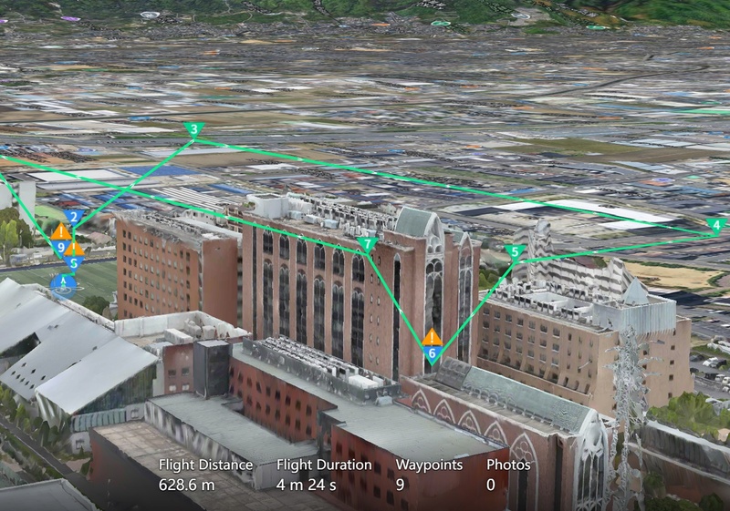 - 既存の建築物・高圧線などの障害物を避けながら安全なルートを設計できるかを検証。