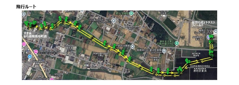 実証実験では、すき家6号南相馬原町店から福島ロボットテストフィールドまで牛丼をドローンで配送する。