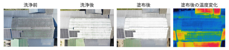 遮熱剤の塗布前には、施工面の洗浄が必要となる。従来の屋根洗浄や遮熱剤塗布には足場設置が必要で、作業者は危険を伴い、長期間にわたる工期やコストも課題であった。