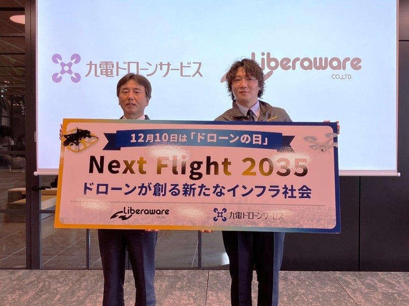 九電ドローンサービス(以下、QDS)とLiberaware(以下、リベラウェア)は、2025年12月10日、CIC福岡において共催イベント「Next Flight 2035─ドローンが創る新たなインフラ社会」を開催した。同イベントは、法令で「無人航空機」が明確に定義された2015年12月10日から10年目となる日に合わせて行われた。