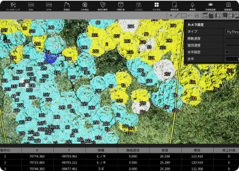 取得したデータは、解析ソフトと連携することでDSM・DTM・樹冠高モデルを自動生成。資源量調査やJ-クレジットのモニタリング、森林整備事業の補助金申請や各種委託業務に必要な図面・数値の算出作業を支援する。
