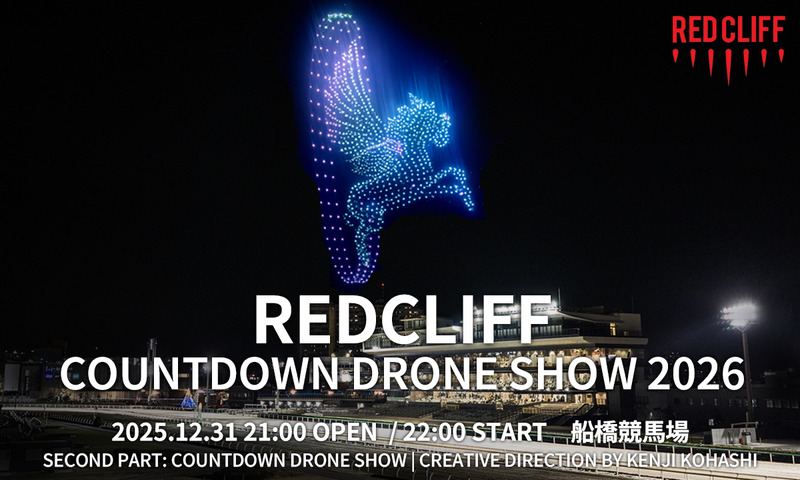 レッドクリフは、2025年12月31日から2026年1月1日にかけて、千葉県・船橋競馬場において年越しイベント「REDCLIFF COUNTDOWN DRONE SHOW 2026」を開催する。訪れる新年にちなみ、2,026機のドローンを使用してカウントダウンドローンショーを実施する。