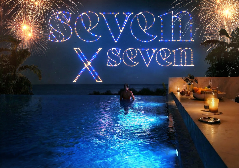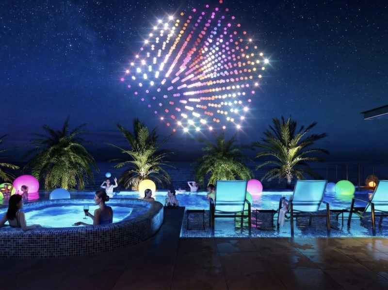 fav hospitality group(以下、FHG)は、2026年1月1日から3日まで、宿泊者を対象に、ホテルseven x seven(セブンバイセブン)石垣で500機のドローンによる光の演出と花火を組み合わせた新年の特別ショー「2026 New Year DRONE SHOW “Origins”」を実施する。