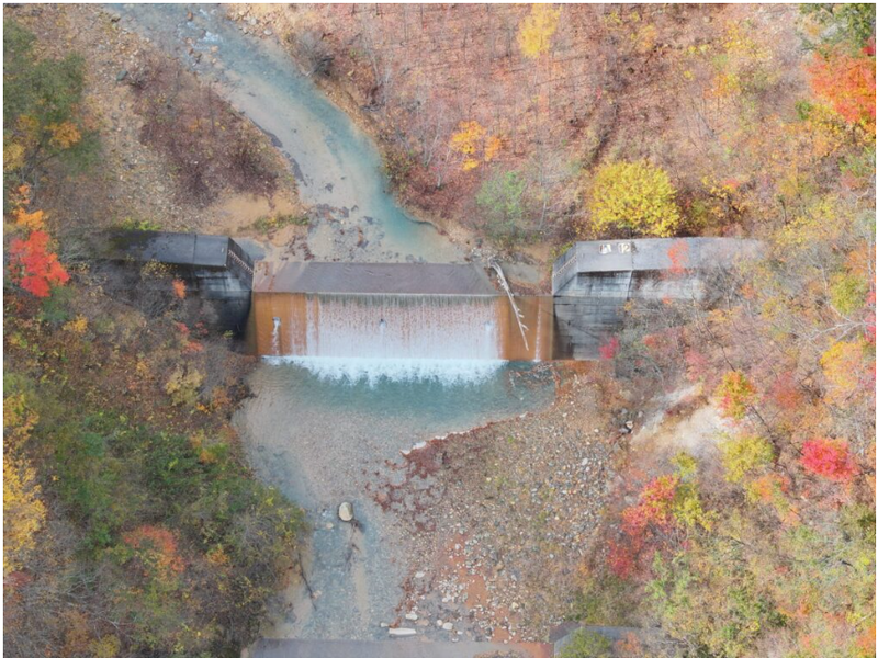 高度100mから3倍ズームカメラで撮影した堰堤
