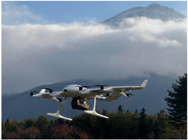 伊藤忠商事が資本・業務提携しているドイツのWingcopter社製eVTOL型ドローン「Wingcopter 198(以下、W198)」は、マルチコプター型のような自律垂直離着陸・ホバリング機能を持つ固定翼型の機体で、マルチコプター型よりも長距離・広範囲の飛行が可能。現在、血液製剤や医療機器の輸送への活用を検討している。