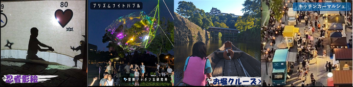 ドローンショー終了後は、和歌山城内で開催している和歌山城~光の回廊~の特別バージョンを楽しめるほか、天守閣の開場時間を21時(入場は20時30分)まで延長する。天守閣の入場料は、大人410円、小人200円。土曜日は小中学生は無料。