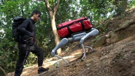 深層強化学習などによる4足歩行ロボットの歩行機能開発が進み、その歩行性能は大きく進化している。Unitree A2は、歩行性能の改善に加え、実際の産業用途に必要な機能や性能を搭載している。
