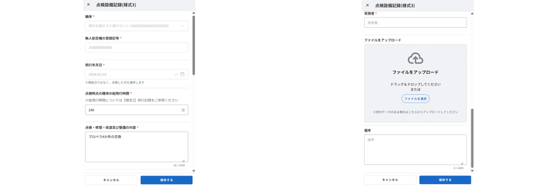 ドローンの社会実装において、各種申請や報告業務に伴う多大な工数が課題となっている。特に現場で日常的に発生する「飛行前のDIPS通報」や「飛行前後の飛行日誌作成」は大きな負担となっている。今回開発した飛行日誌機能により入力記録の一元管理や自動化を推進し、現場の負担を軽減するとともに、法令に準拠した各様式の適切な管理体制の構築を支援する。