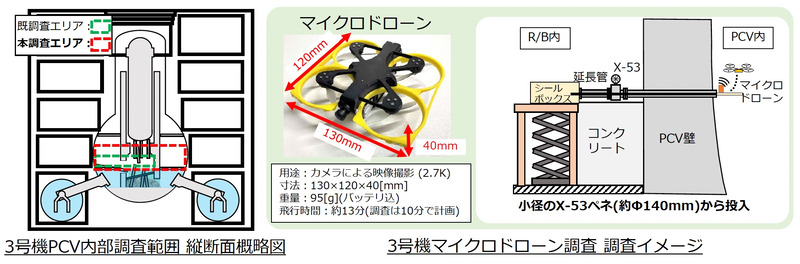 3号機で使用可能なX-53ペネトレーション(貫通部)が小径であることから、超小型マイクロドローンを活用した調査を計画している。