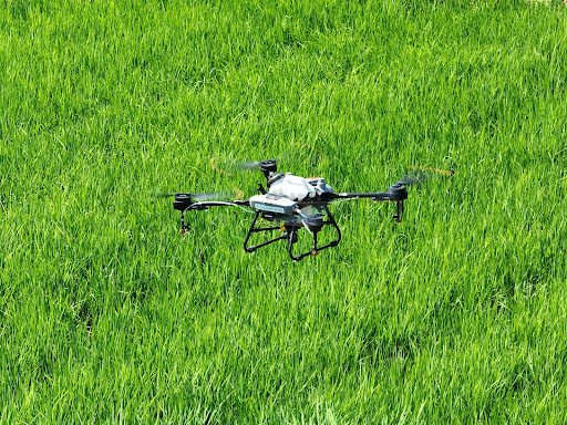 写真:写真:圃場を飛行するドローン