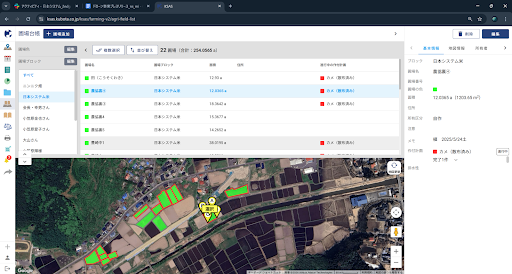 圃場の情報を表示した圃場台帳
