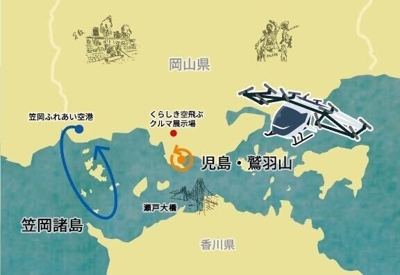SkyDriveはMASCとの協議を経て、瀬戸内エリアを結ぶ具体的な路線案を策定した。この計画は、MASCが推進する事業計画「SCAI28(スカイ28)」の一環であり、牛窓・小豆島間や宇野・直島間、鷲羽山周遊などのルートでの観光路線を検討している。その第一歩として今回は、笠岡諸島の周遊ルート、および児島・鷲羽山周辺の周遊ルートを新たに策定した。