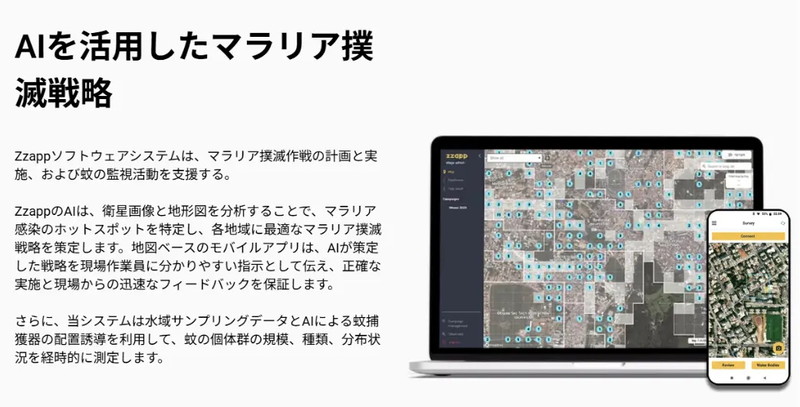Zmartは、衛星画像やGISデータをAIで解析し、マラリア感染リスクの高い地域の特定や対策戦略の立案を支援する技術を有している。同技術の開発・活用により、主にサブサハラアフリカ各地で実績をあげており、その実用性と有効性を示している。