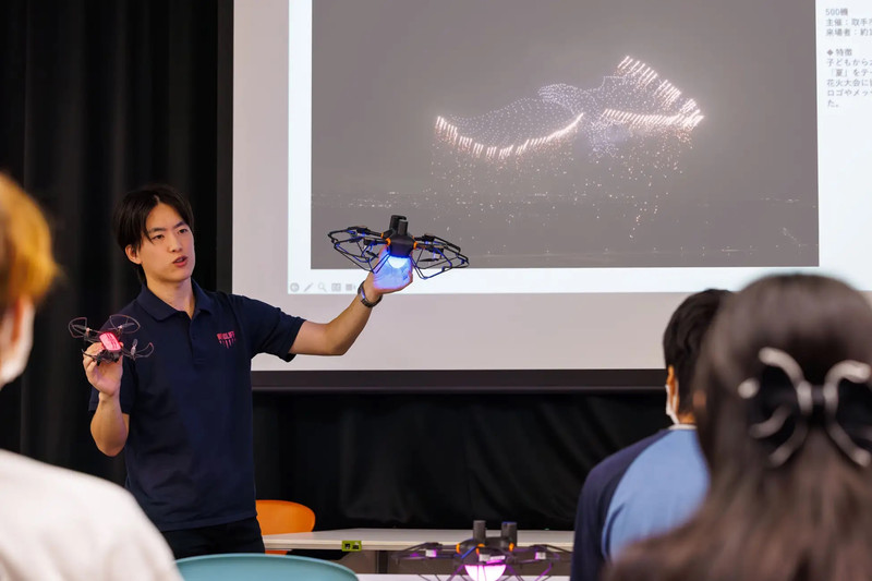 レッドクリフ代表取締役の佐々木孔明氏は、大学生時代にドローンと出会い、その可能性に強い魅力を感じて大学を中退し起業した。2024年8月には「Forbes JAPAN 30 UNDER 30 2024」に選出されるなど、ドローン分野で事業を成長させている。講話では、こうした自身の経験をもとに、進路の選び方や挑戦することの価値、仕事への向き合い方について話をし、子どもたちが自分の将来を考えるきっかけを提供する。