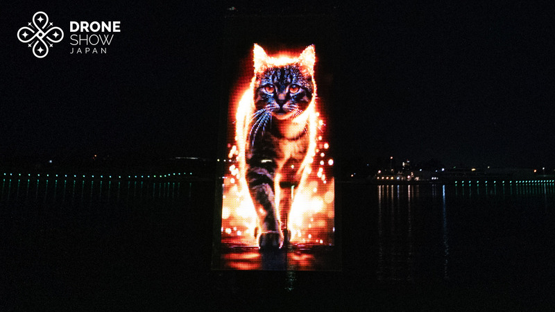高さ10m、幅5mと3階建ての住宅に匹敵する大きさのスクリーンは、精細な文字やロゴ、映像コンテンツを高精細ディスプレイによる空中投影で実現し、訴求内容を正確かつ鮮明に観客へ届ける。単体での活用のほか、表現が異なるドローンショーと組み合わせて演出の幅を広げることもできる。