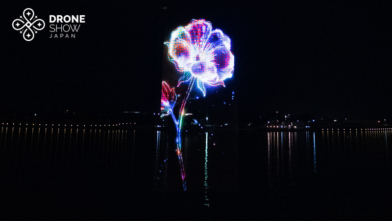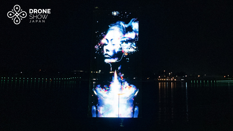 写真:空中ディスプレイに表示されたドローンショー・ジャパンのロゴ