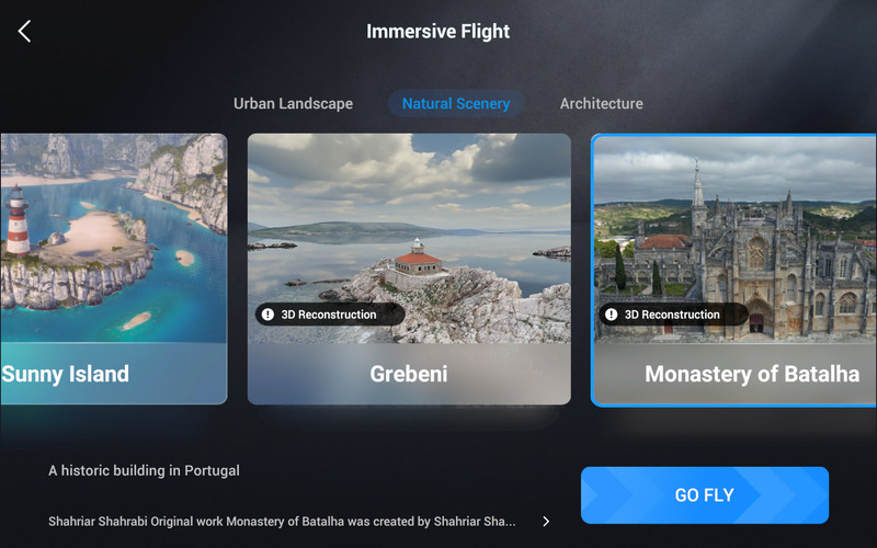 内蔵されているDJI FLYアプリにはMavic 4 Proを忠実に再現したシミュレーター機能がある。シミュレーター内では、複数の撮影環境(市街地・離島・遺跡等)が用意されている。そのほか、DJI FLYアプリそのもののインターフェイスに撮影機能(DJI FLYアプリで撮影することができる)とプレビューがついていたり、衝突・墜落した際には第三者視点で振り返り再生もできるようになっていたりするので、実際に飛ばさなくても撮影練習を重ねることができる。