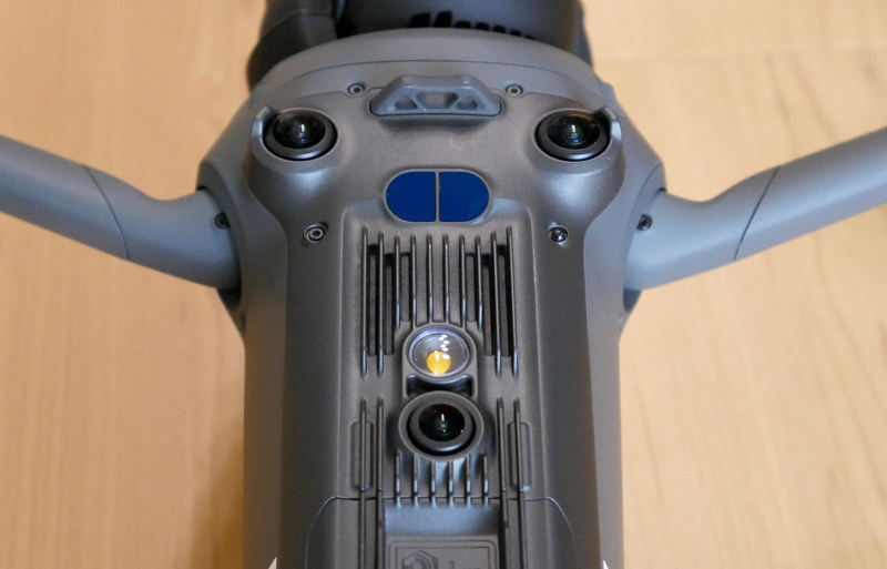 低照度対応の魚眼ビジュアルセンサーは上面3つ+下面3つの配置に変更され(Mavic 3 Proは前方2つ+後方2つ+下方2つ)障害物を360°監視するほか、新規追加されたLiDARセンサーが右アームに搭載される。Air 3SやFlipでは機体前面中央にLiDARが搭載されていたが、Mavic 4 Proでは大型のカメラが前方中央にあるため右アームに配置したものと思われる。