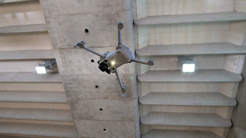 実際の飛行テストでは、GPS信号がほとんど取得できない屋内施設でも安定したホバリングを維持し、入力すれば遅延なく意図した方向に操縦ができる。ATTI(手動操縦)モードへの強制切り替えも発生せず、優れた姿勢制御性能を発揮した。