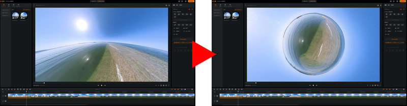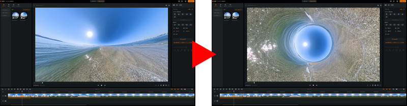 キーフレームを設定し、キーフレームを選択した状態のプレビュー画面でリトルプラネットやラビットホールを作れば、ダイナミックな映像表現が自動生成される。