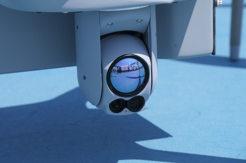 プロペラも含めてマットグレーに仕立てられたこのG2は、すでにイスラエルの軍隊や警察で偵察活動などに使用されている。カメラが撮影する敵やテロリストに近づくと、逆に撃ち落とされる可能性があるため、なるべく遠くから被写体を撮影できるよう、可視光で40倍、赤外線でも16倍という光学ズーム機能を搭載。トランジェクトリーの説明によると、現在、市販のドローンに搭載されている赤外線カメラで16倍ズームのもつものは希少だという。