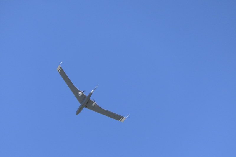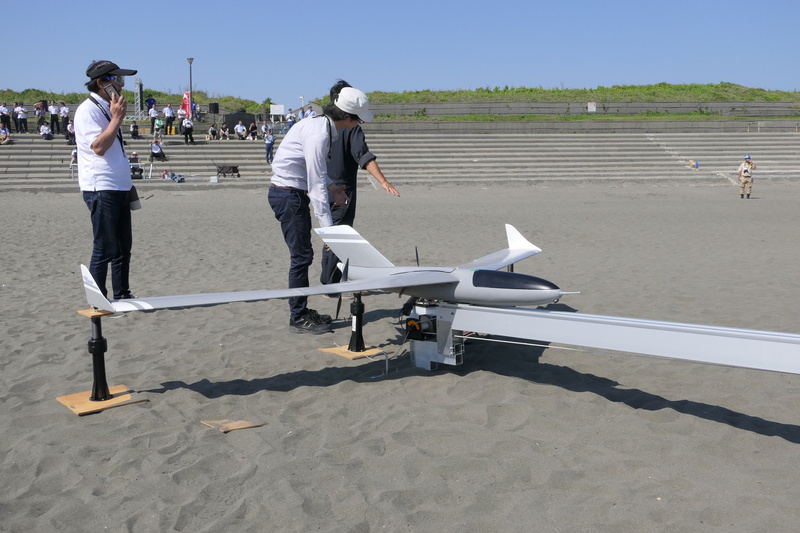 この日のデモンストレーションには、マルチコプター型ドローンだけでなく固定翼ドローンも参加した。航空自衛隊や陸上自衛隊に射撃訓練用無人標的機を納入しているフジ・インバックは、その技術を生かした固定翼ドローン2機のフライトを披露した。