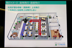 今回の記者会見では、今年からこの物流用ドローンポートを発展させ、屋外ばかりでなく、ブルーイノベーションがビルメンテナンス企業の大成、NTT東日本と連携してサービスを展開するオフィス内警備ソリューション「T-FREND」をはじめとする、屋内も含めたドローンポートソリューションとして「BIポート」を発表。今後はこのBIポートを、倉庫内の搬送に使うマルチコプターやローバーといったインドアロボティクスや、さらには空飛ぶドローン、エアモビリティの離発着ポートに展開し、「最終的にはあらゆる移動体への連携が可能な“クラウドモビリテ”構想へと進めていく」(熊田氏)という。
