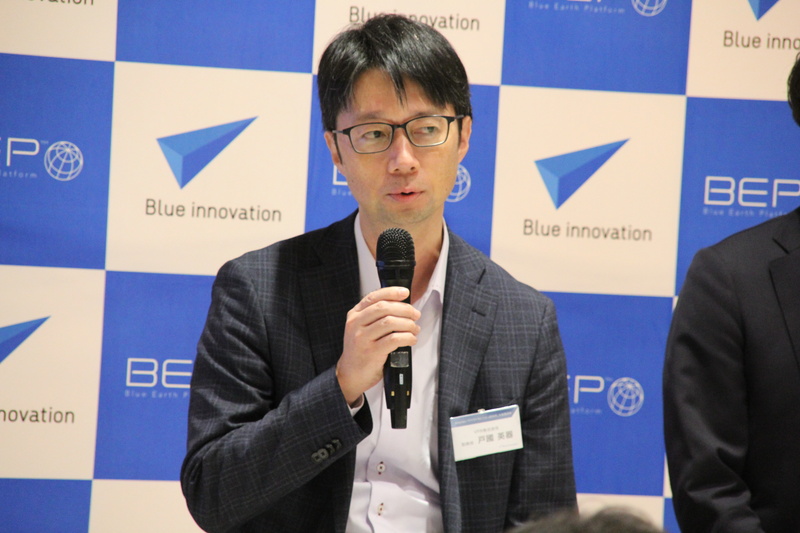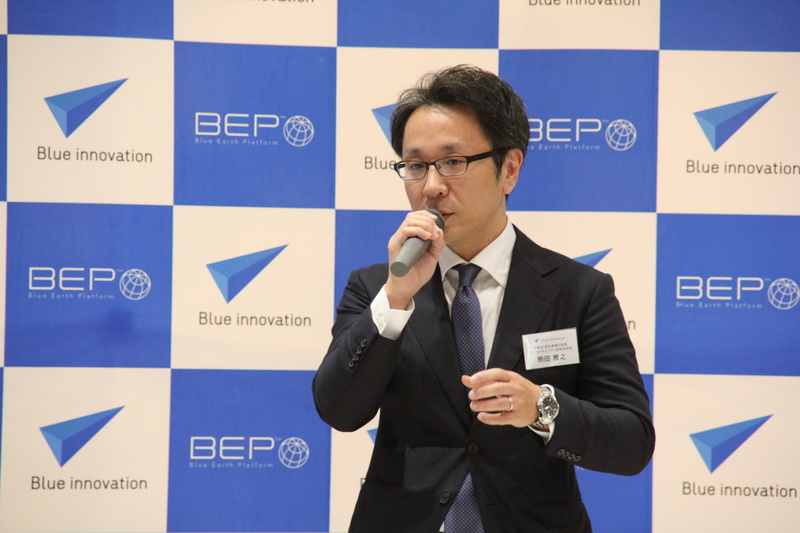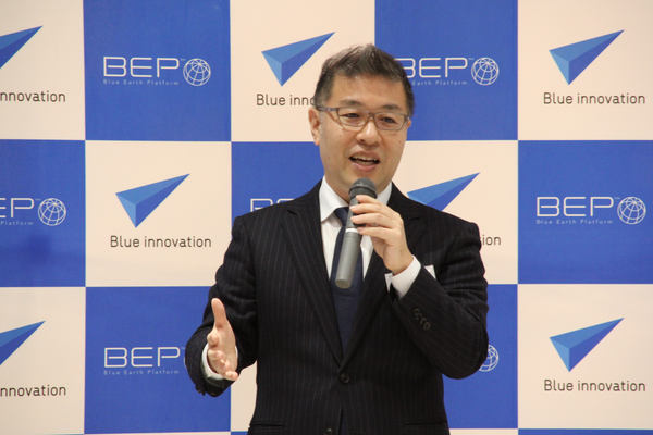MFLP・LOGIFRONT 東京板橋1階のドローンラウンジで開催された会見には、まずブルーイノベーションの熊田貴之社長が登壇し、板橋DFとクラウドモビリティ研究所の開設の経緯を説明した。同社は従来からシステム開発の拠点を板橋区内に置いていた関係から、MFLP・LOGIFRONT 東京板橋の開発を手掛けた三井不動産や日鉄興和不動産から打診を受け、ドローンのテストフィールドの開設を提案。熊田社長は「当時、ドローンのテストフィールドはとても遠い場所ばかりでした。この施設が完成すれば、都心で大規模に様々な実験ができるようになるので提案しました」と当時を振り返った。