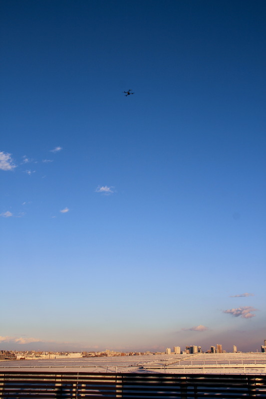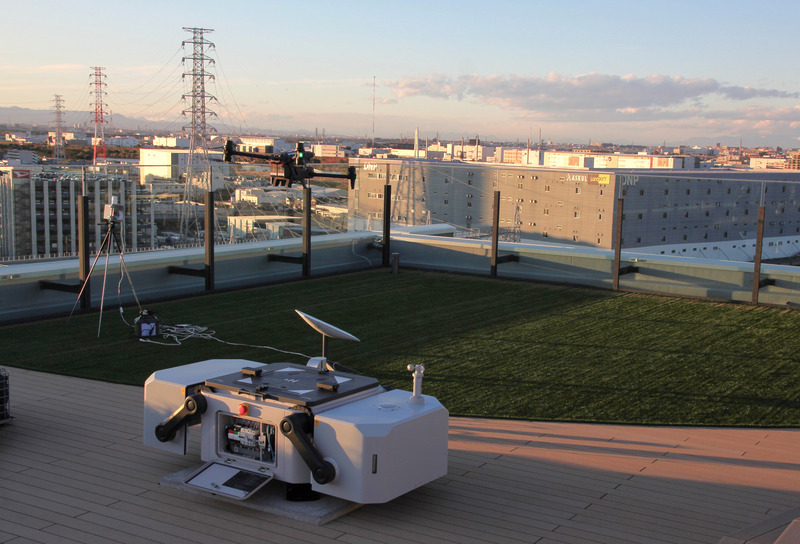 担当者によれば、物流棟屋上におけるドローンポートを利用した飛行について、包括申請を行い許可・承認を取得しているという。第三者の立ち入りを厳格に管理できる屋上という空間だからこそ、困難といわれるドローンポートの包括申請による許可・承認が取得できたのではないかと推察する。一帯はドローンの飛行が通常禁止されている人口集中地区(DID)であり、実際、屋上からは東京北部の市街地が広がる様子を見渡せた。現地はいわばドローンの「最困難飛行地域」であり、そこで高レベルな飛行が日常的に行われているわけだ。クラウドモビリティ研究所の開所と研究の進展により、ドローンポートや点検分野におけるドローン活用の取り組みは確実に加速していく。それが実感できるデモだった。