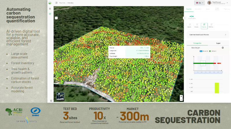 特殊なスペクトルカメラとAI予測分析を組み合わせたソリューションの紹介もあった。これは土壌侵食の問題解決から、森林の炭素固定量の自動定量化、果樹園の健康状態評価まで、幅広い用途に応用されている。「通常、炭素固定量の評価は人が歩いて行いますが、私たちのシステムではドローンが自動的に各木を検出し、炭素含有量を測定します。これはESG(環境・社会・ガバナンス)にも非常に重要です」とカマルル氏は説明する。農業における同社のソリューションは、作物の収穫量を平均30%向上させる効果もあるという。