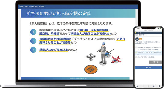 ──ドローン国家資格制度における二等資格の取得を支援するeラーニングサービス「EneLearn Drone Meister」の特長を教えてください。