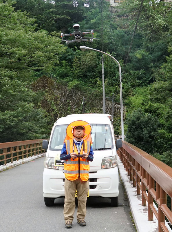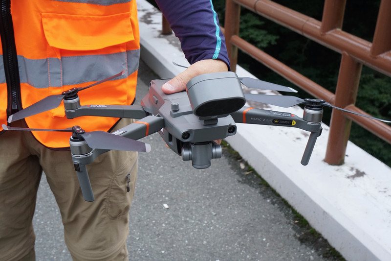 実施場所は、観光客の多い河川敷に隣接する「寸庭橋」「北氷川橋」「昭和橋」の3か所。いずれも川の水面から約20mの高さに橋がかかっており、ドローンは橋の上から高度約10mで飛行する。橋の上からドローンの動きを目視でき、安全管理がしやすいのが選定理由である。