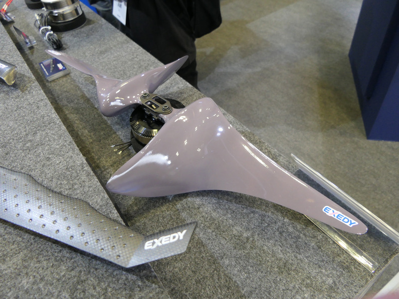 エクセディが開発中の独特な形状の高効率プロペラ。