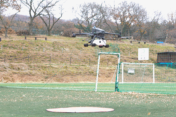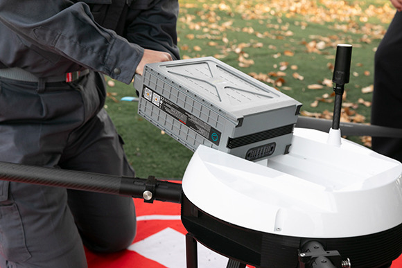 この日のデモフライトは10分程度で終了したが、ペイロードに余裕のあるM400ではTDOT 7 GREEN LITEを搭載した状態で30分程度の飛行が可能だという。