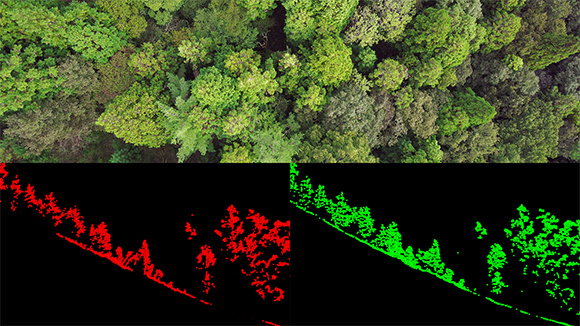 夏の草むらでも地表面と草の境界がはっきり出ることからグリーンレーザーが選ばれる