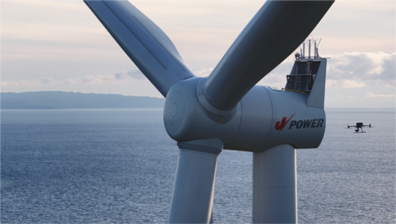 風力発電設備では、ドローンを風車のブレードやタワーに沿って自動航行させながら効率よく点検ができるソリューションが実装段階にあり、風車のメンテナンス事業者が点検サービスのツールの1つとしてドローンを利用している。