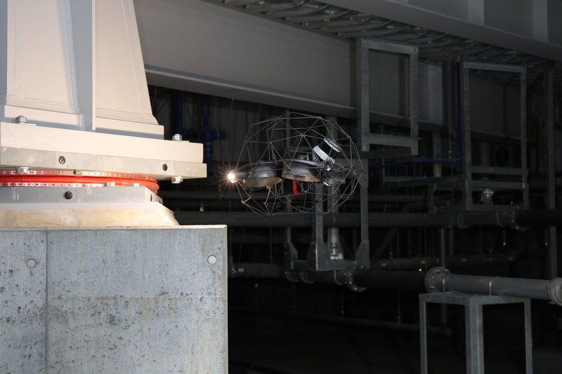 現場と同様の環境でドローンを飛ばすことができる「地下ピット点検ゾーン」。屋内点検などの検証が可能。