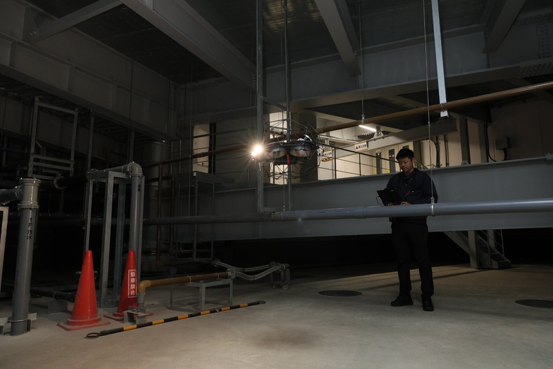 写真:地下ピット点検ゾーンで操縦者がドローンを飛行させる様子