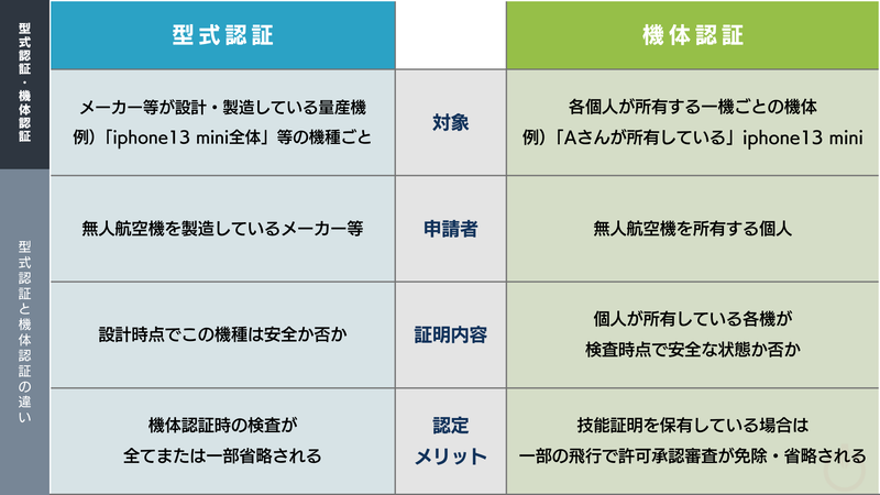 型式認証と機体認証の違い(出所:資料をもとにせりぽよが作成)