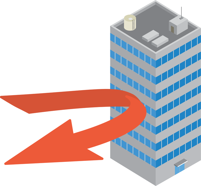 吹き降ろしは、建物の高さが高いほど、また風速が速いほど強くなる傾向がある。そして、ビルの上部で風が加速し、ビルの壁面に沿って地表に向かって吹き降りるため、地表付近で強風が発生する。